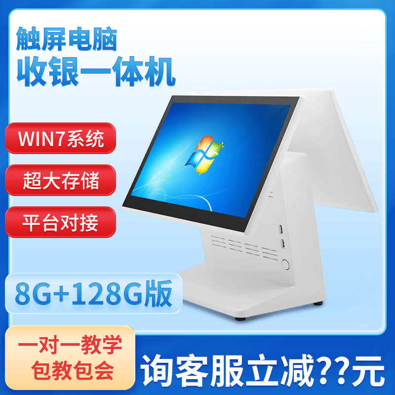 机一体机收银驰奶银餐收银电脑收款机 餐饮超市点茶店机系统 触